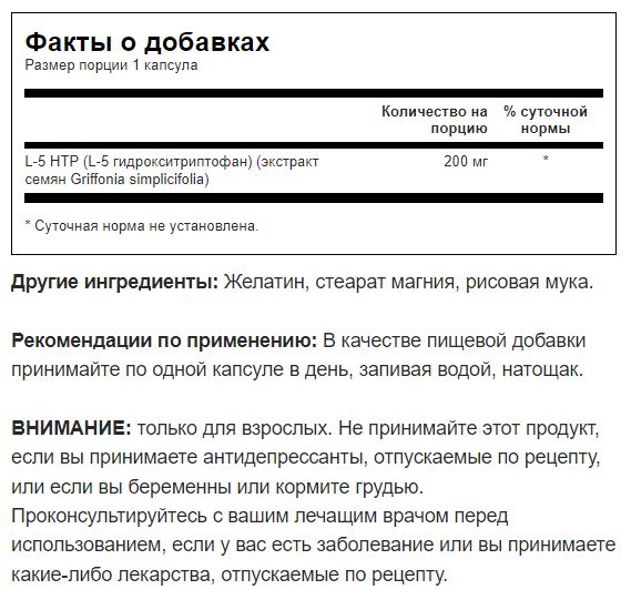 L-5 HTP (L-5 гидрокситриптофан) (экстракт семян Griffonia simplicifolia)