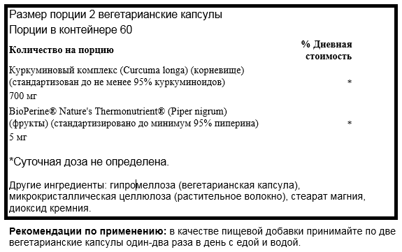 Откройте для себя удивительные эффекты Swanson Curcumin Complex! Хотя традиционные культуры давно признали куркумин (широко известный как куркума) за его полезные для здоровья свойства, большинству американцев он лучше всего известен как кулинарная специя. В то время как это необходимо для хорошего карри, возможности этой травы простираются далеко за пределы кухни. Куркумин приносит пользу вашим суставам и здоровью мозга, повышает запасы антиоксидантов и многое другое. Новые исследования также предполагают нейропротекторные свойства, поддержку здорового пищеварительного тракта и большую защиту от окислительного стресса.