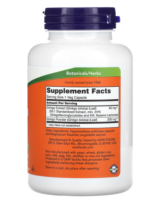 Экстракт гинкго (Ginkgo biloba) (листья) (стандартизированный экстракт 50:1, мин. 24% гинкгофлавонгликозидов и 6% терпеновых лактонов)