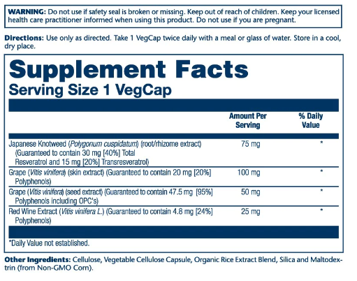 Доказано, что употребление красного вина оказывает положительное влияние на сердце, но не для всех. Resveratrol Japanese Knotweed 75 mg от Solaray объединяет преимущества стакана красного вина в день в удобной капсуле для регулярного использования.