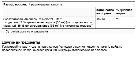 Life Extension Resveratrol Elite (Элитный ресвератрол) проявляет высокую антиоксидантную, противовоспалительную и антивозрастную активность. Добавка борется со свободными радикалами, снижает риск образования тромбов, предупреждает возрастное ухудшение зрения, омолаживает кожу.