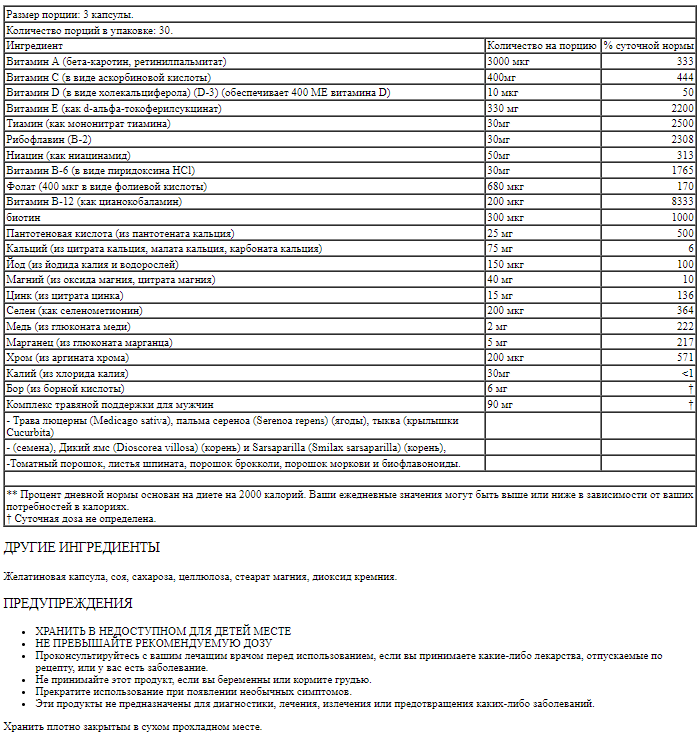 Размер порции: 3 капсулы.