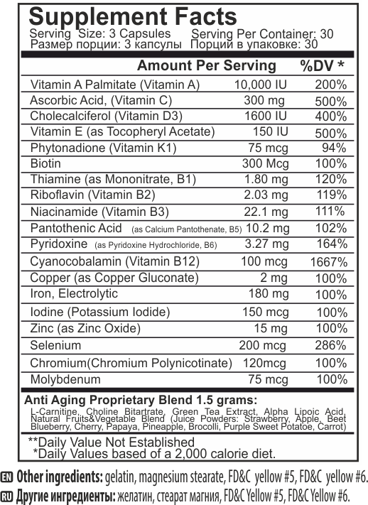 Продукт не является лекарственным средством и не предназначен для лиц моложе 18 лет, беременных и кормящих женщин. Перед приемом проконсультируйтесь с врачом. Не превышайте указанную дозировку. Меры предосторожности: хранить в недоступном для детей месте. Продукт не является заменителем пищи. Не следует превышать рекомендуемую дозировку. Производитель не несёт ответственности за любой вред, причинённый в результате ненадлежащего использования или хранения продукта.