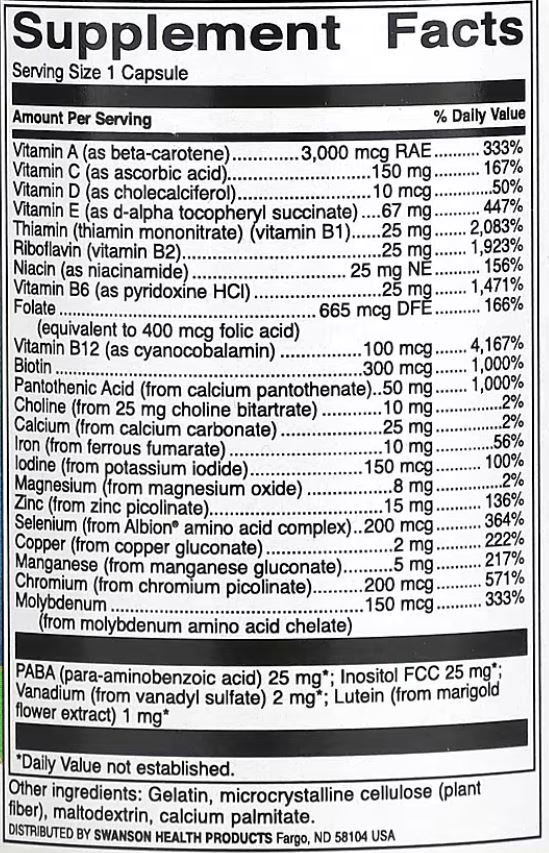 Полный дневной запас 19 основных витаминов и минералов
