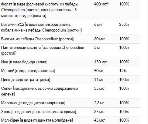 Фолат (в виде фолата из ростков киноа (Chenopodium quinoa), L-5-метилтетрагидрофолата соли кальция)