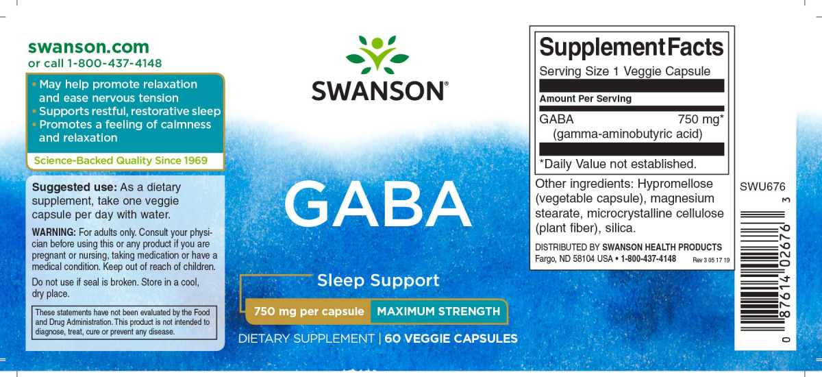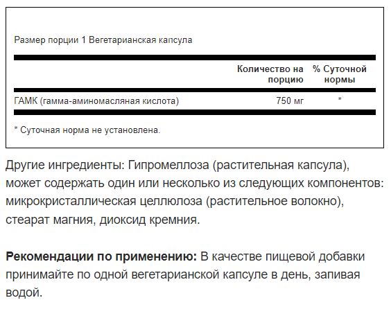 GABA 750 mg (ГАМК 750 мг) 60 вег капсул (Swanson) — купить в Санкт-Петербурге в интернет-магазине спортивного питания KULTURIST#1