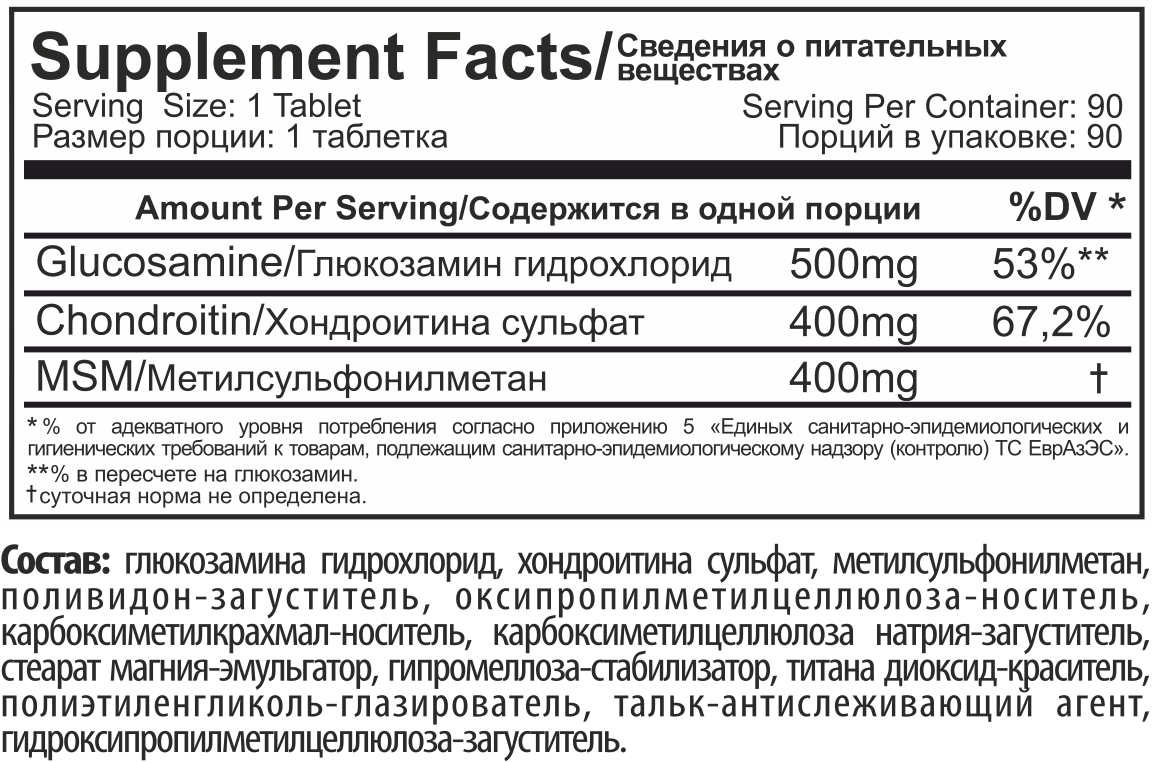 Glucosamine Chondroitin MSM 90 таблеток (Tree of Life) - это сочетание самых эффективных компонентов для здоровья ваших суставов и связок. Высокое содержание компонентов направлено на восстановление и поддержание здоровья, эластичности и гибкости ваших суставов, а также придает здоровье вашим волосам, коже и ногтям! Комплекс идеален как для профилактики суставных заболеваний и быстрого снижения болевых ощущений, так и для ускорения процесса восстановления и лечения.