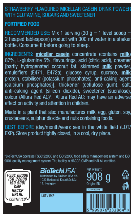 Biotech USA Micellar Casein 908 гр. — купить в СПб в интернет-магазине спортивного питания KULTURIST#1