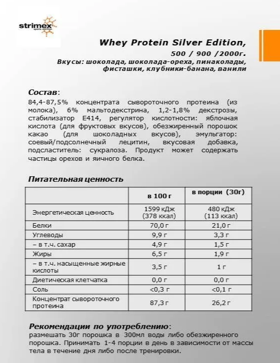Кроме того, Strimex® WHEY PROTEIN SILVER EDITION абсорбируется и усваивается быстрее в мышечных клетках. Таким образом образование мышечной массы и повышение силовых показателей происходит быстрее.