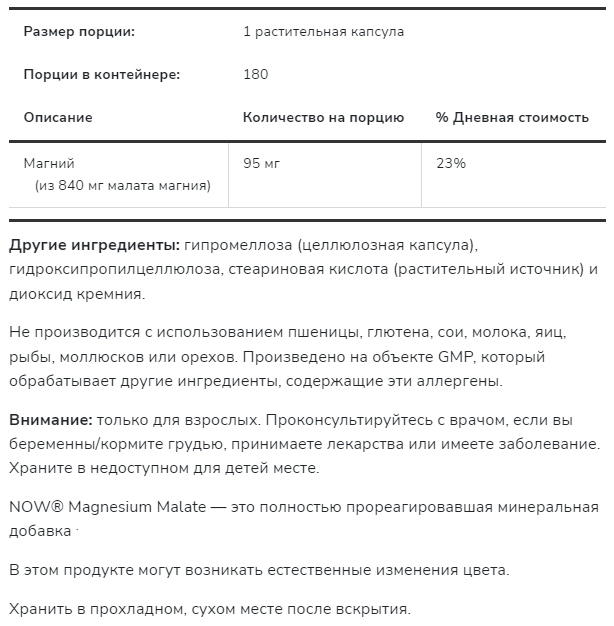 При изготовлении этого продукта не используются пшеница, глютен, соя, молоко, яйца, рыба, моллюски и древесные орехи. Производится на предприятии, имеющем регистрацию надлежащей производственной практики (GMP), где выполняется обработка других ингредиентов, содержащих эти аллергены.