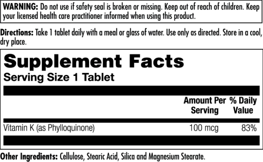 KAL Витамин K 100 мкг – витамин K для поддержки костно-мышечной, кровеносной, нервной и иммунной системы. Участвует в регуляции свертываемости крови, играя ключевую роль в синтезе белков, необходимых для этого процесса.