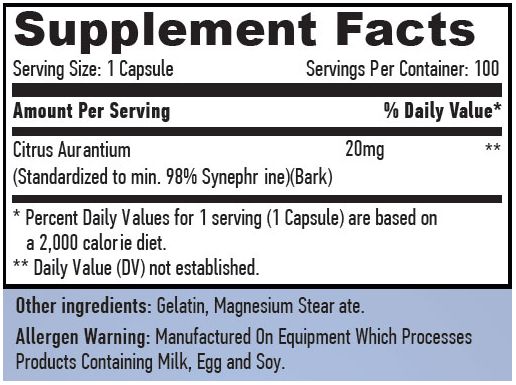 Экстракт померанца горького получают из плодов соответствующего растения, родственных апельсину, и обнаруживает в составе немало активных веществ, оказывающих благоприятное воздействие на организм, в частности синефрин – алкалоид, имеющий адренергическое действие, схожее с действием кофеина.Значительная часть эффектов экстракта обусловлена способностью синефрина возбуждать адреналиновые рецепторы, что влечет за собой ускорение сердечного ритма, повышение бодрости и энергии, мобилизацию мышечной ткани, усиление внимания и концентрации. Ускорение обменных процессов и увеличение выработки тепла связаны с активизацией переработки жиров. Принято считать, что экстракт померанца действует более мягко, нежели иные стимулирующие вещества, не так сильно нагружает нервную и сердечнососудистую систему.