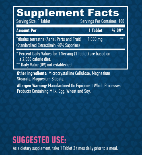 Высококачественный продукт, который на 100% состоит из Tribulus Terrestris и может помочь вам поддерживать высокую производительность и быстрое восстановлени