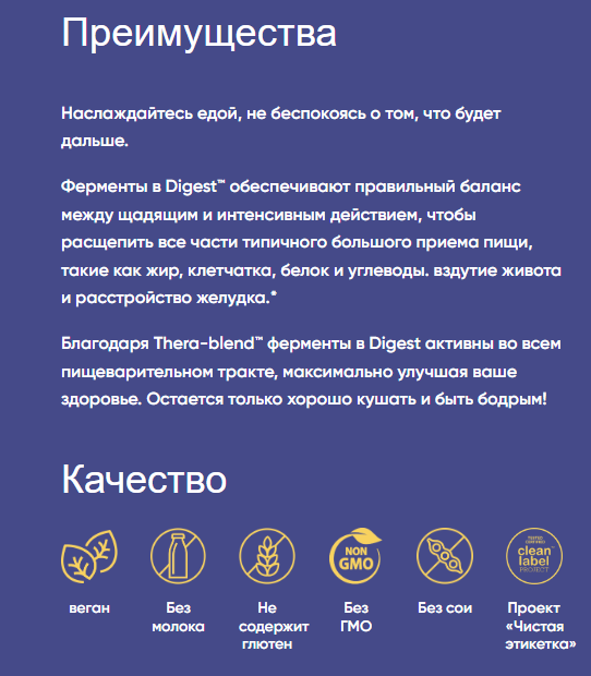 Не содержит яиц, молочных продуктов, консервантов, соли, сахарозы, сои, пшеницы, дрожжей, орехов, кукурузы, глютена, казеина, картофеля, риса, искусственных красителей и ароматизаторов.