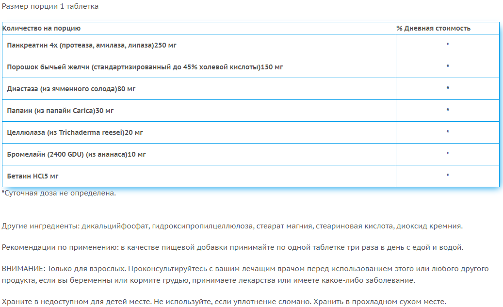 Поддерживает переваривание углеводов, белков и жиров Поддерживает здоровое пищеварение и максимизирует усвоение питательных веществ Стимулирует высвобождение и производство естественных пищеварительных ферментов в поджелудочной железе
