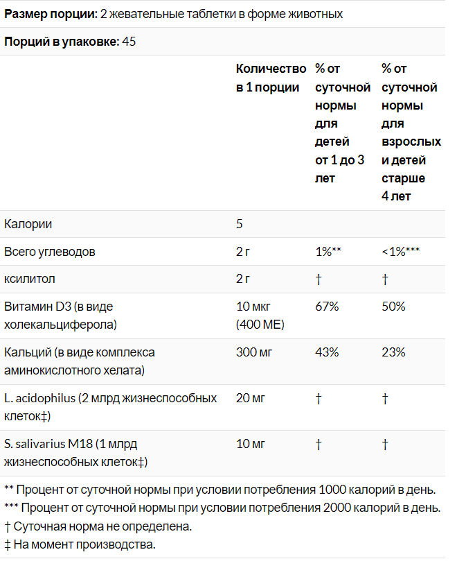 Содержит витамин D3 и кальций в удобных для детей количествах для поддержания здоровья ваших детей