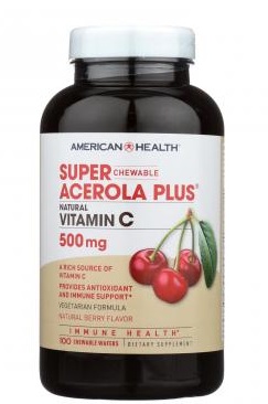 SUPER ACEROLA PLUS от AMERICAN HEALTH — ВКУСНАЯ ДОБАВКА, КОТОРАЯ МОЖЕТ ПОДДЕРЖАТЬ ИММУНИТЕТ И СОДЕРЖИТ АНТИОКСИДАНТЫ. НАША БЕЗГЛЮТЕНОВАЯ ФОРМУЛА, ОТМЕЧЕННАЯ НАГРАДОЙ ЗА ЛУЧШИЙ ВКУС, ВКЛЮЧАЕТ ЯГОДЫ АЦЕРОЛЫ, БИОФЛАВОНОИДЫ ЦИТРУСОВЫХ И ШОВОВНИКА, КОТОРЫЕ ОБЕСПЕЧИВАЮТ 500 MG. НАТУРАЛЬНОГО ВИТАМИНА С В КАЖДОЙ ПАСТИЛКЕ. НАША ВЕГАНСКАЯ ДИЕТИЧЕСКАЯ ДОБАВКА НЕ СОДЕРЖИТ ЛАКТОЗЫ И НЕ ИМЕЕТ ИСКУССТВЕННЫХ ВКУСОВ, КРАСИТЕЛЕЙ ИЛИ КОНСЕРВАНТОВ. НЕТ НАТРИЯ, ГРЕЙПФРУТА ИЛИ СОИ И НЕТ ПРОИЗВОДНЫХ МОЛОКА ИЛИ ЯИЦ.