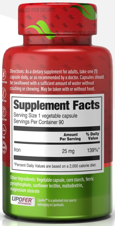В отличие от традиционных добавок железа, которые могут вызывать побочные эффекты, такие как запор, диарея, рвота, боль в животе или тошнота, липосомальная форма, произведённая по инновационной технологии микрокапсулирования, не вызывает расстройств желудочно-кишечного тракта, изменения цвета стула и не оставляет металлического привкуса во рту.